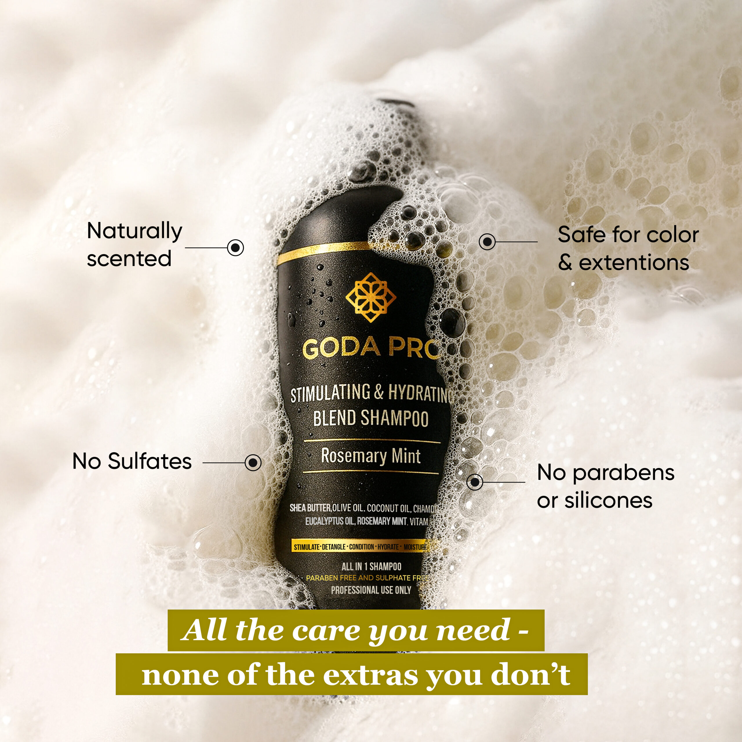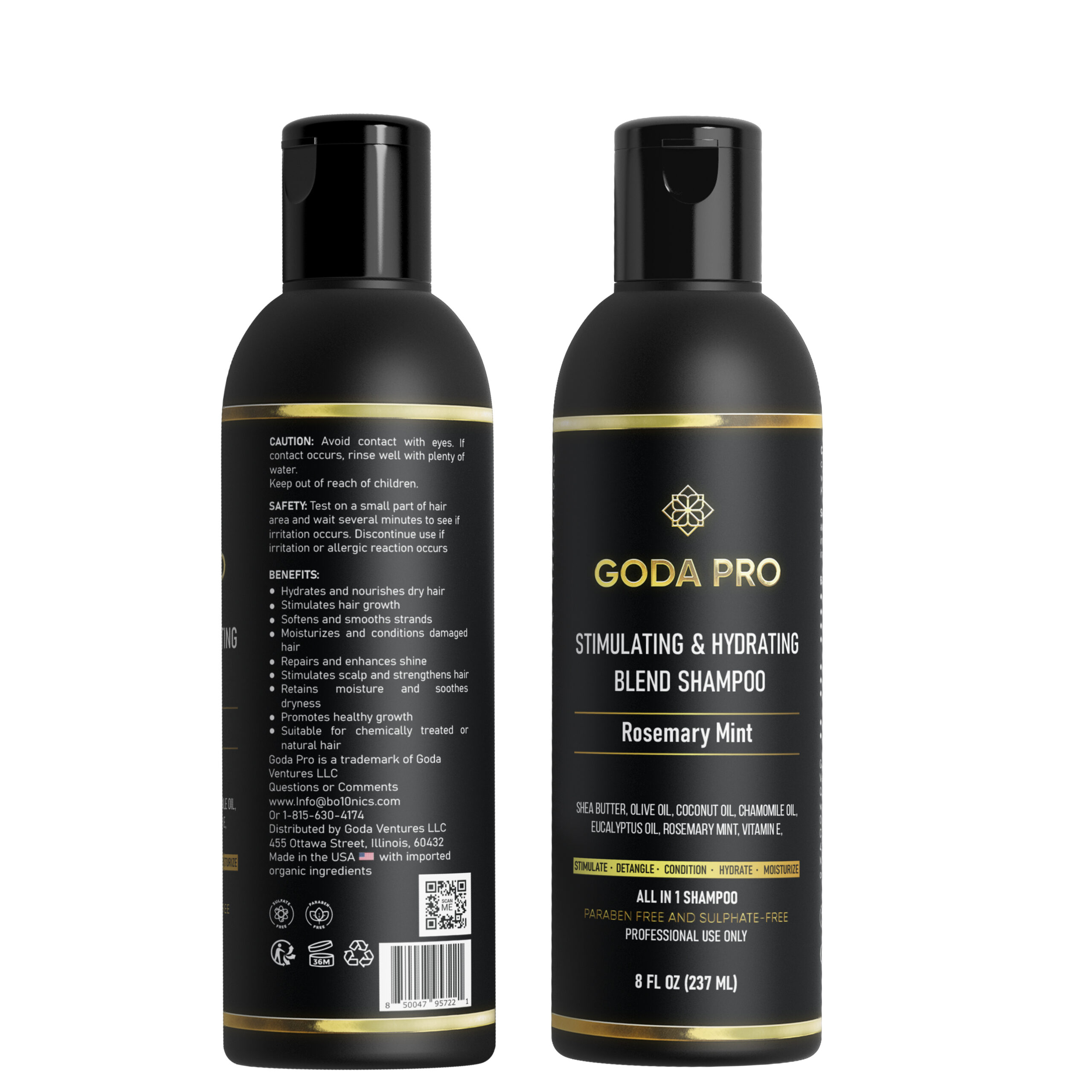 Transform your hair care routine with GODA PRO Stimulating & Hydrating Blend Shampoo in refreshing Rosemary Mint. This professional-grade, all-in-1 formula combines nourishing ingredients like shea butter, olive oil, coconut oil, and chamomile oil to deliver comprehensive care for your hair. The sulfate-free and paraben-free formula helps stimulate hair growth while providing deep hydration and repair for damaged strands. Infused with natural rosemary mint, this 8 fl oz shampoo not only cleanses but also conditions, detangles, and moisturizes in one step. Perfect for all hair types, including chemically treated hair, it helps retain moisture while promoting healthy growth and enhanced shine. The naturally scented blend soothes dry scalp while strengthening hair strands. This versatile shampoo offers professional-quality results without harsh chemicals, making it safe for color-treated hair and extensions. Experience the perfect balance of stimulation and hydration for healthier, more manageable hair.